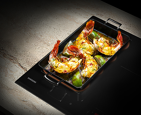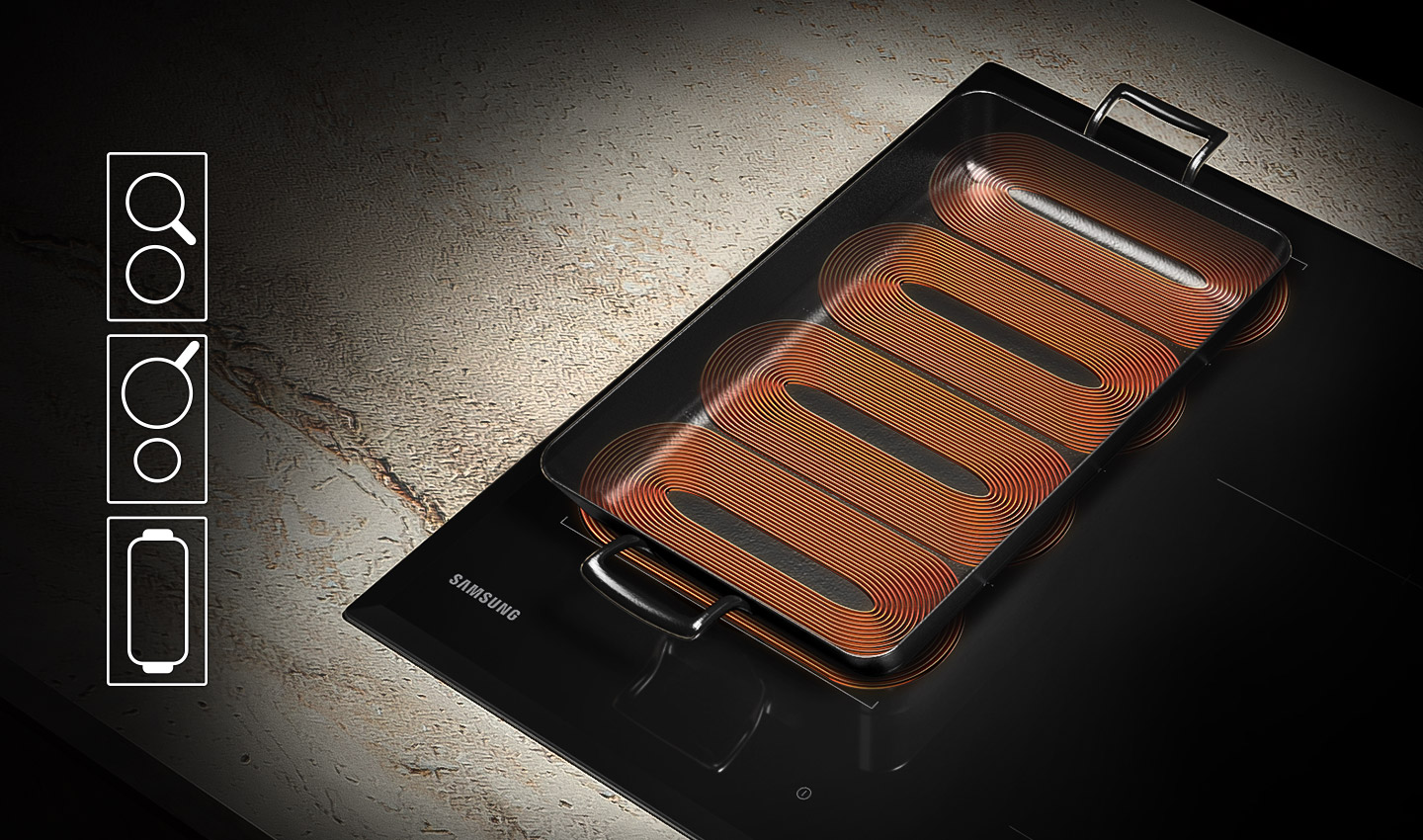 A nagy edények és serpenyők elhelyezésére kevésbé alkalmas kialakítás könnyen okozhat frusztrációt a felhasználóknak, különösen akkor, amikor nagy adagokat szeretnének főzni, például a karácsonyi vacsorára. A Samsung FlexZone technológiával ellátott indukciós főzőlapjai megoldhatják ezt a problémát, mivel nagyobb rugalmasságot biztosíthatnak a főzőedények elhelyezésében. A FlexZone funkció automatikusan az edény tényleges méretéhez igazítja az indukciós fűtési zónát, így mindenféle edénytípus elhelyezhető rajta, a kis serpenyőktől a nagyobb, ovális alakú, tűzálló edényekig, vagy akár a téglalap alakú sütőedényekig.