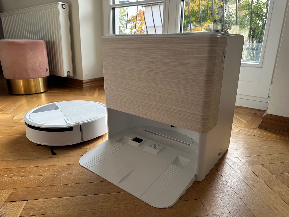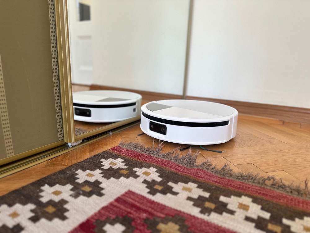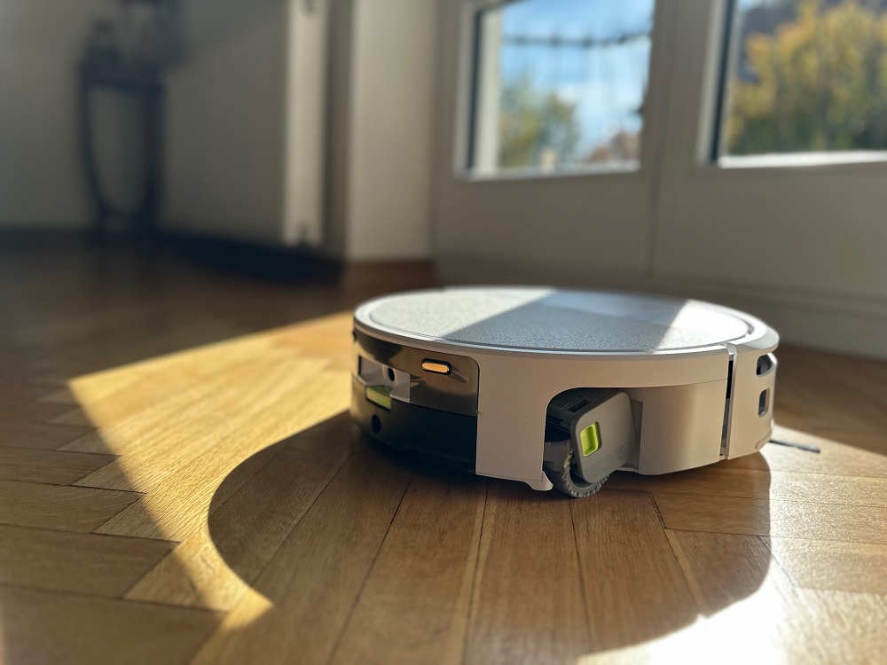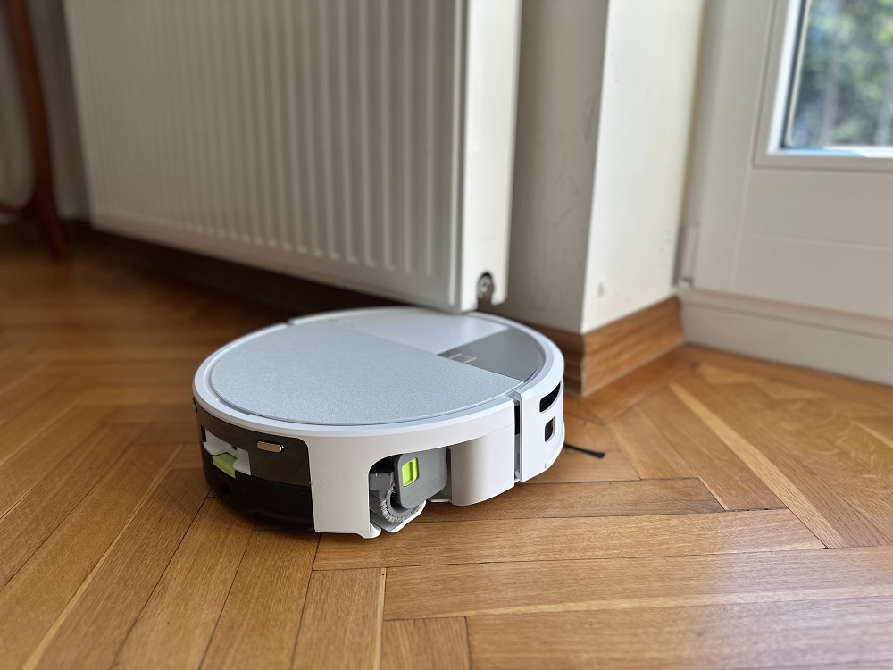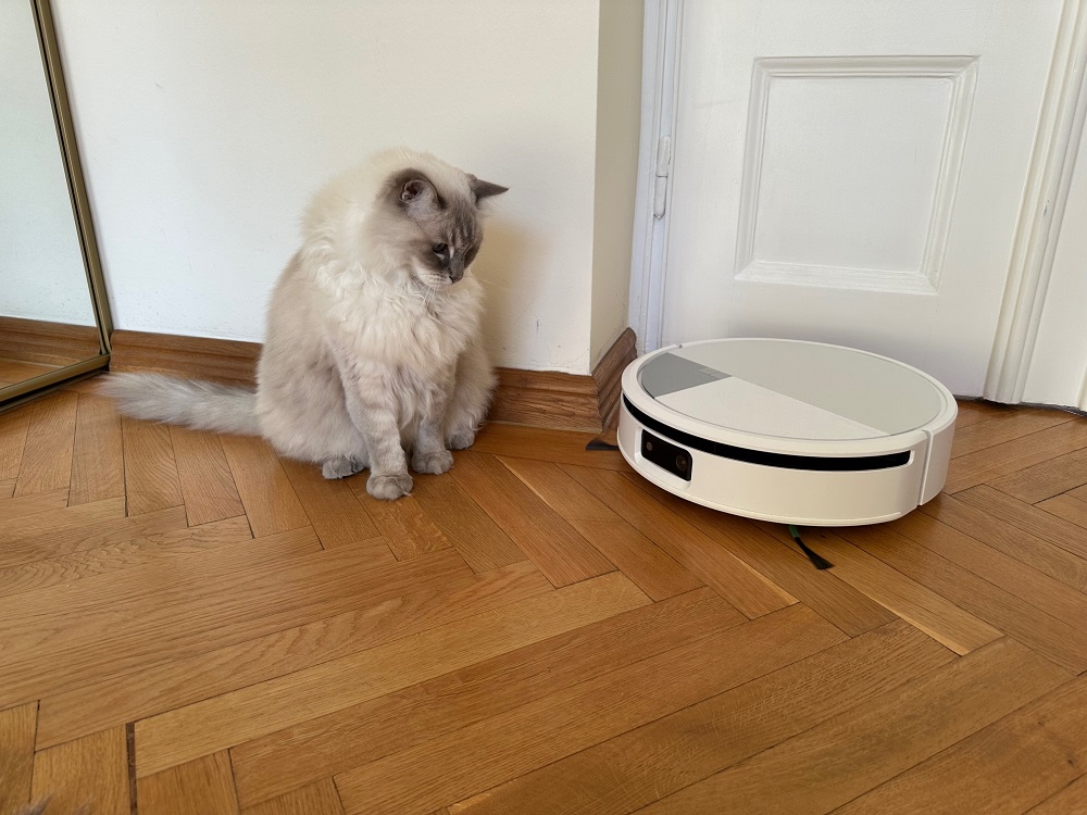 A tisztítási teljesítmény ezúttal sem okozott csalódást. Tesztünk során a szerkesztőség cicája, Elise is “segített” – ő biztosította a megfelelő mennyiségű cicaszőrt a szőnyegre, és szigorúan felügyelte a robot minden mozdulatát. A normál szívóerővel nem tudta maradéktalanul kiszedni a mélyebben megbújó szőrszálakat, viszont a Deep Clean üzemmód aktiválásával a helyzet gyorsan megoldódott. A négy takarítási mód – Smart, Light, Standard és Deep Clean – különböző szívóerőt és vízadagolást kínál, így könnyen testre szabható a tisztítás a padló típusa és a szennyeződés mértéke szerint. A keménypadlón halk és precíz, szőnyegen pedig erőteljesen dolgozik, és automatikusan felismeri, mikor melyik felületen jár.
