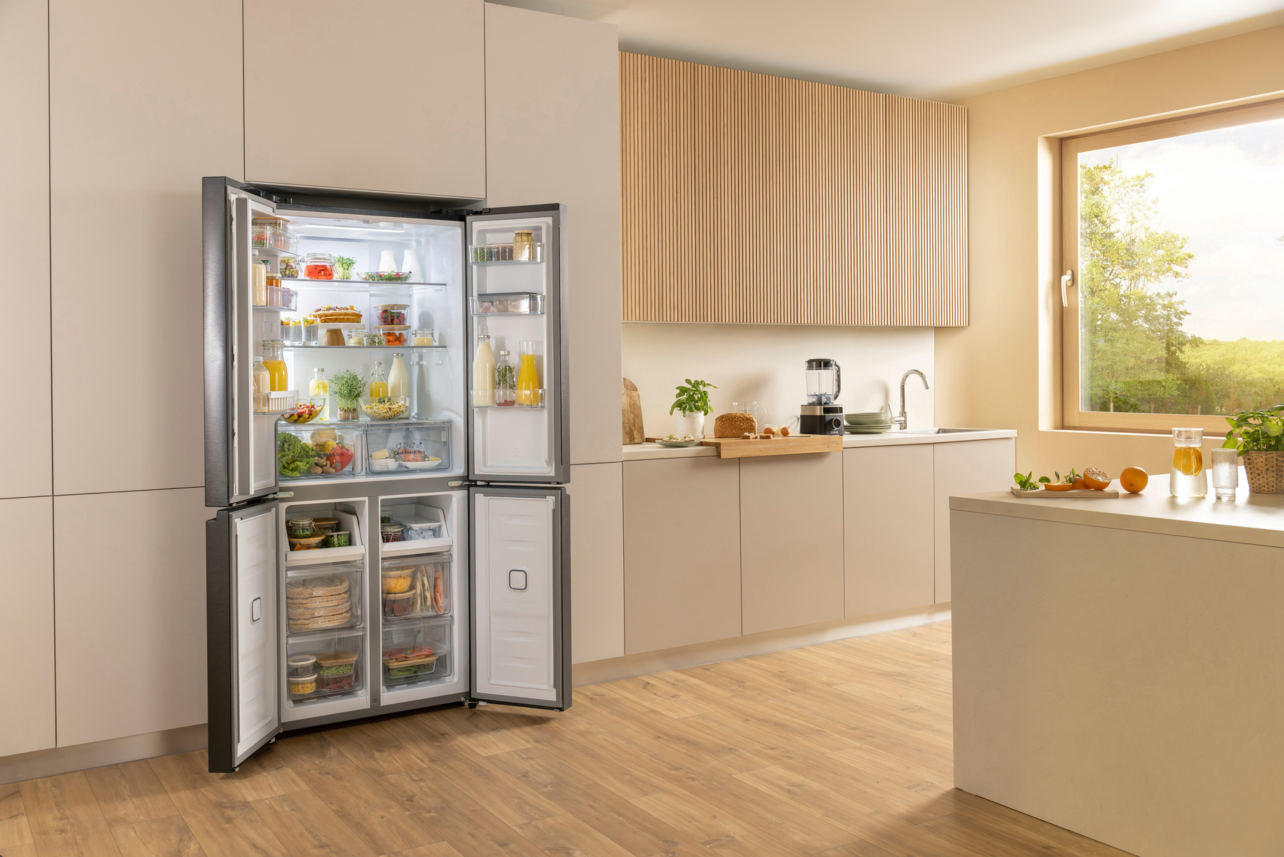 A hétköznapok tele vannak váratlan helyzetekkel: váratlan vendégek, nagybevásárlás vagy egy különleges vacsora alkalmával a hűtőnek is rugalmasan kell alkalmazkodnia. Ebben nyújt segítséget a Convert FreshZone rekesz, amely igény szerint hús- és hal-, vagy gyümölcs- és zöldségtárolóként használható. Így a tárolás könnyen hozzáigazítható az aktuális szezonhoz, a friss alapanyagok mennyiségéhez vagy éppen egy ünnepi menü igényeihez. A nagyobb szabadság a belső tér szervezésében nagyobb kreativitást is hoz a konyhába, és teret ad az új ízek és fogások kipróbálásának.